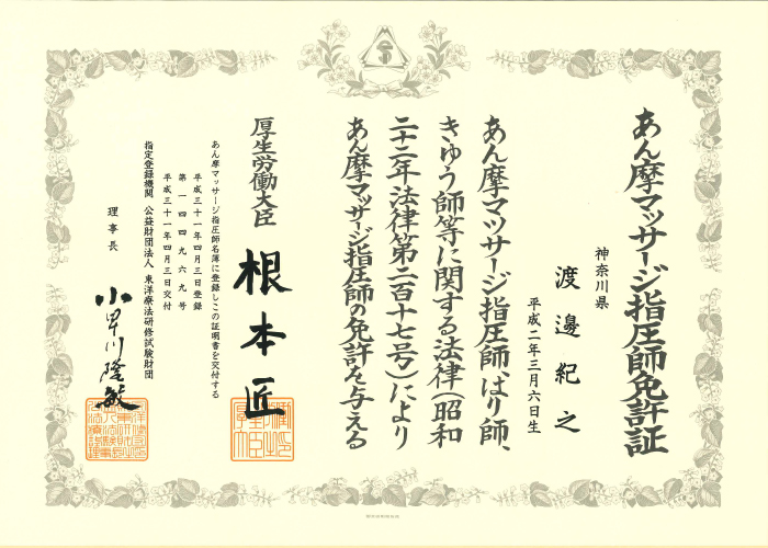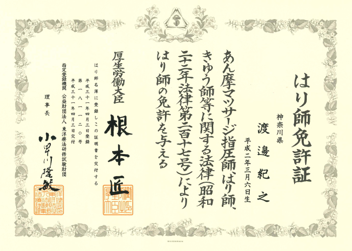 資格:柔道整復師・鍼灸師・按摩マッサージ指圧師